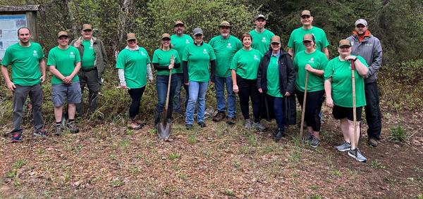 Janice Allen, director of land protection at the North Carolina Coastal Land Trust with our Alissa Cale, land asset manager, and Jim Williamson, inventory manager, at our Cool Springs Environmental Education Center. The Trust is the conservation easement holder for Cool Springs.